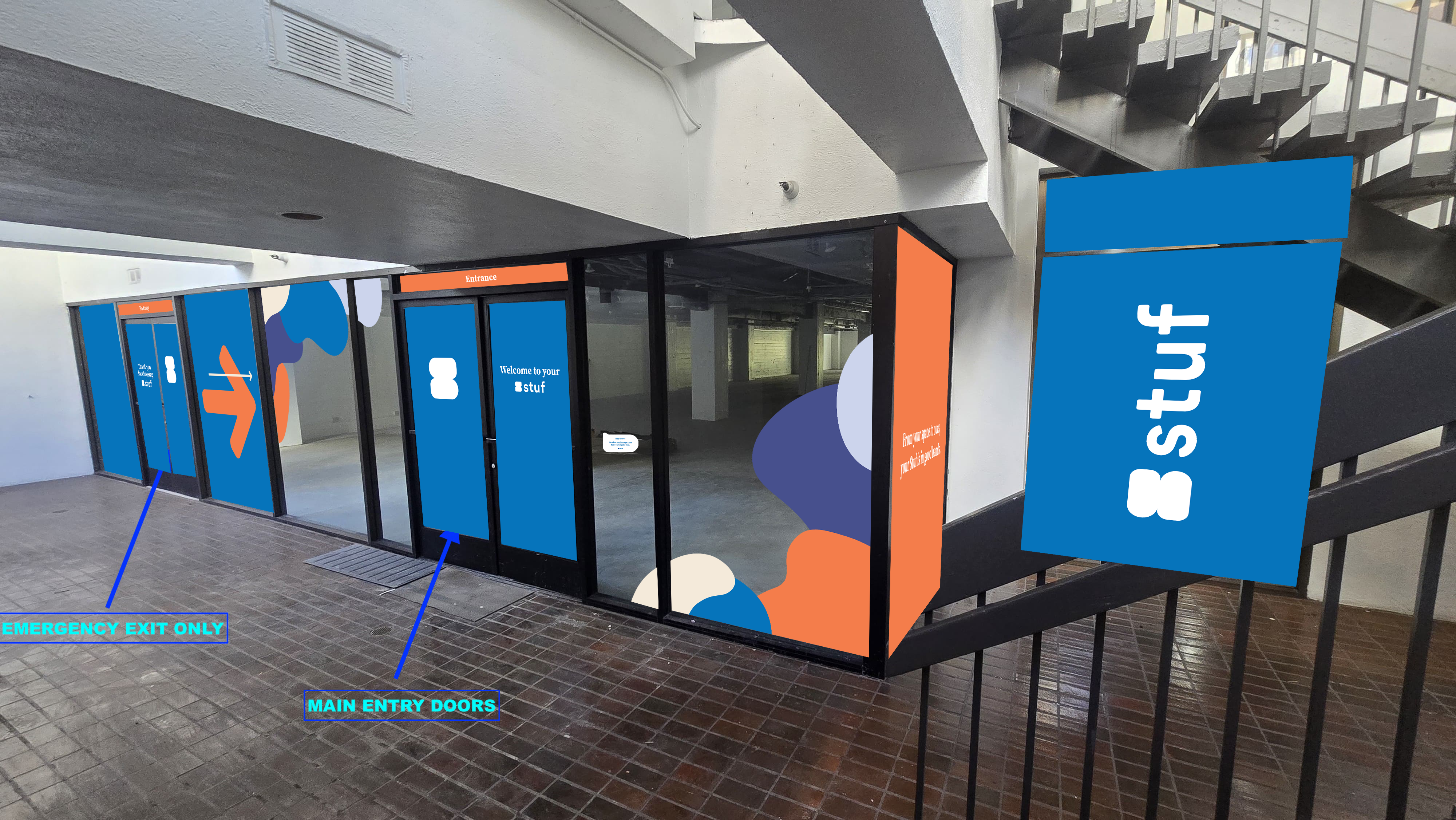 Wayfinding & branded murals for self-storage locations